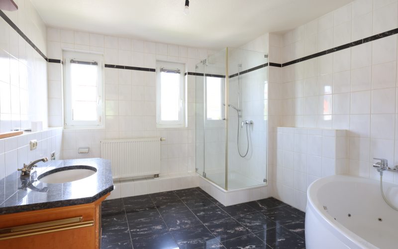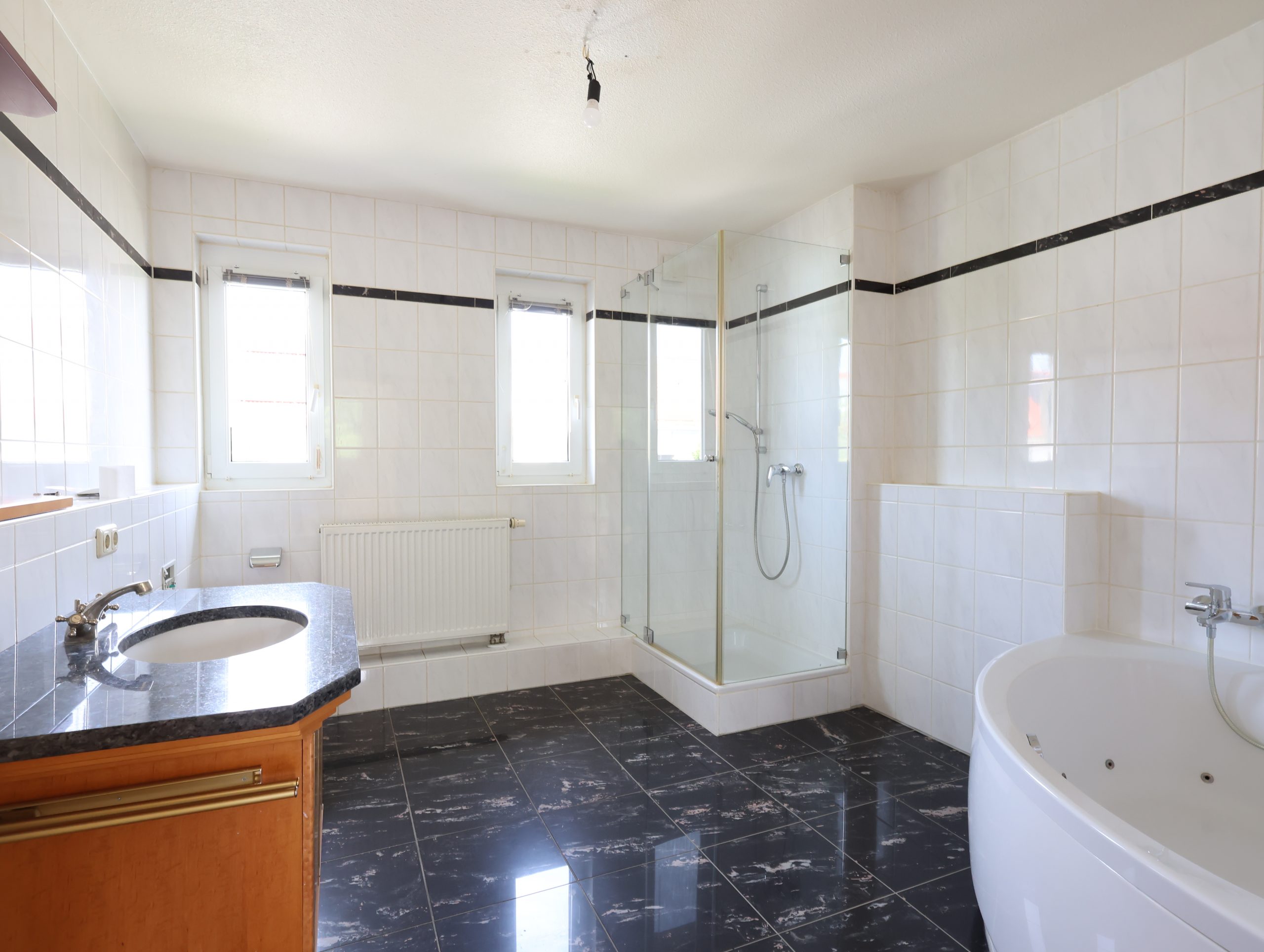 Im 1. Obergeschoss befindet sich ein großzügiges Badezimmer mit Whirlpool, das höchsten Ansprüchen an Komfort gerecht wird.